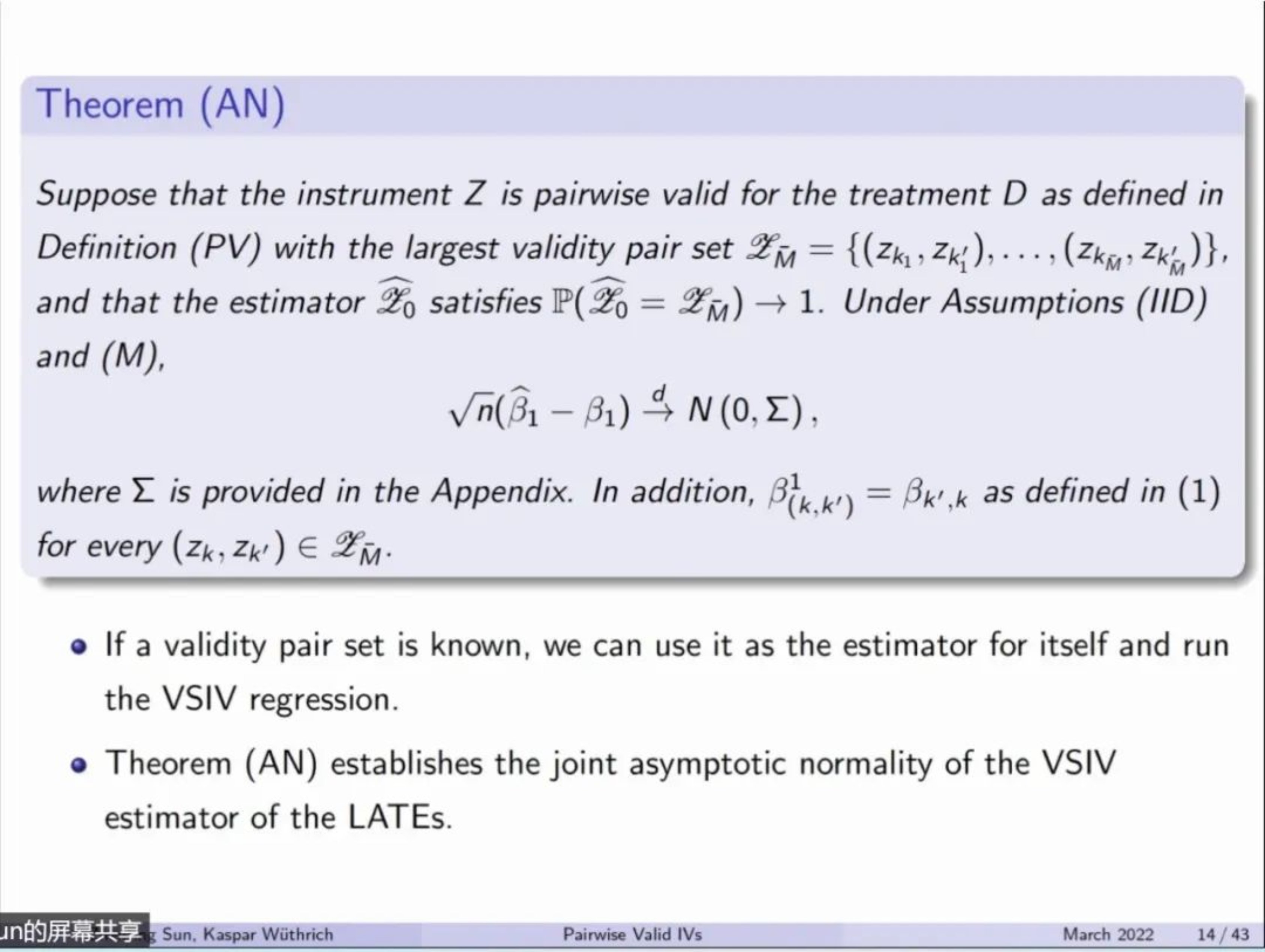 2022年3月25日,北京大学助理教授孙振庭应我院邀请进行了以“Pairwise Valid Instruments”为主题的讲座。