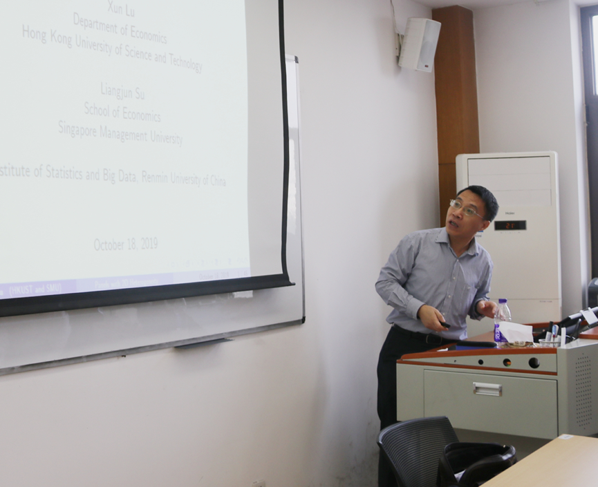 2019年10月18日上午,来自新加坡管理大学的苏良军教授在我校崇德西楼(原科研楼)702会议室为我校师生进行了以“Uniform Inference in Linear Panel Data Models with Two-Dimensional Heterogeneity”为主题的报告会。