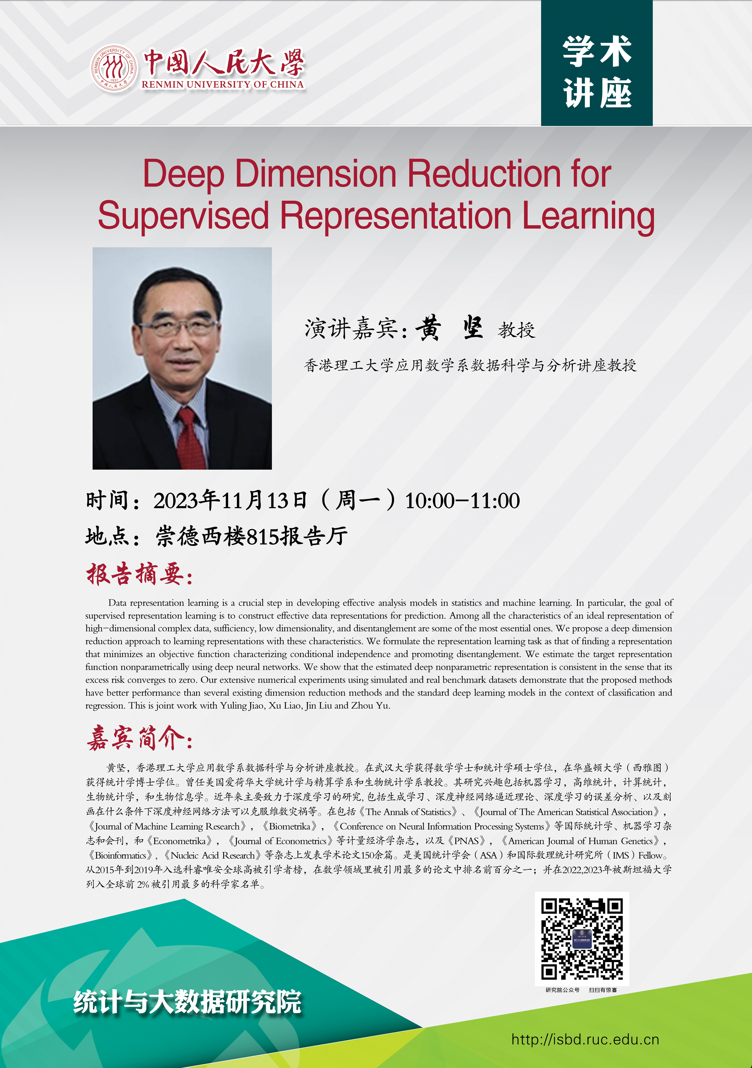 预告:我院将邀请香港理工大学应用数学系黄坚教授到院讲座
